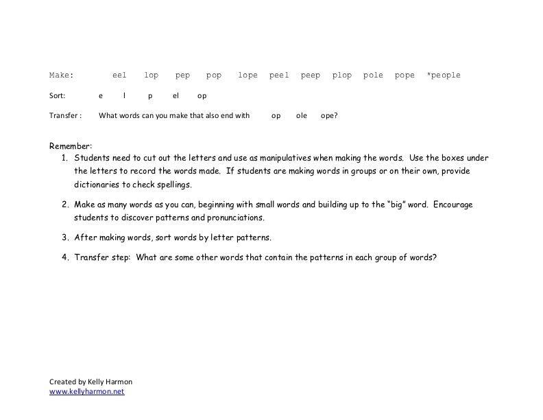 This will help students look for letter patterns and build vocabulary. TEKS 2.2C, CCSS L2.2